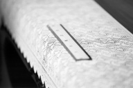 ファインダでピントを合わせた位置は定規のメモリ「15」の中心のつもりです。実際のファインダ画像は上の画像より多分小さく(パソコンのモニタに依存)、もっと見にくいので、ここでは「中心のつもり」と表現しました。リンク先の大きな画像をご覧いただけば、このML型改造スクリーンが120%実用になることは納得できるでしょう。
