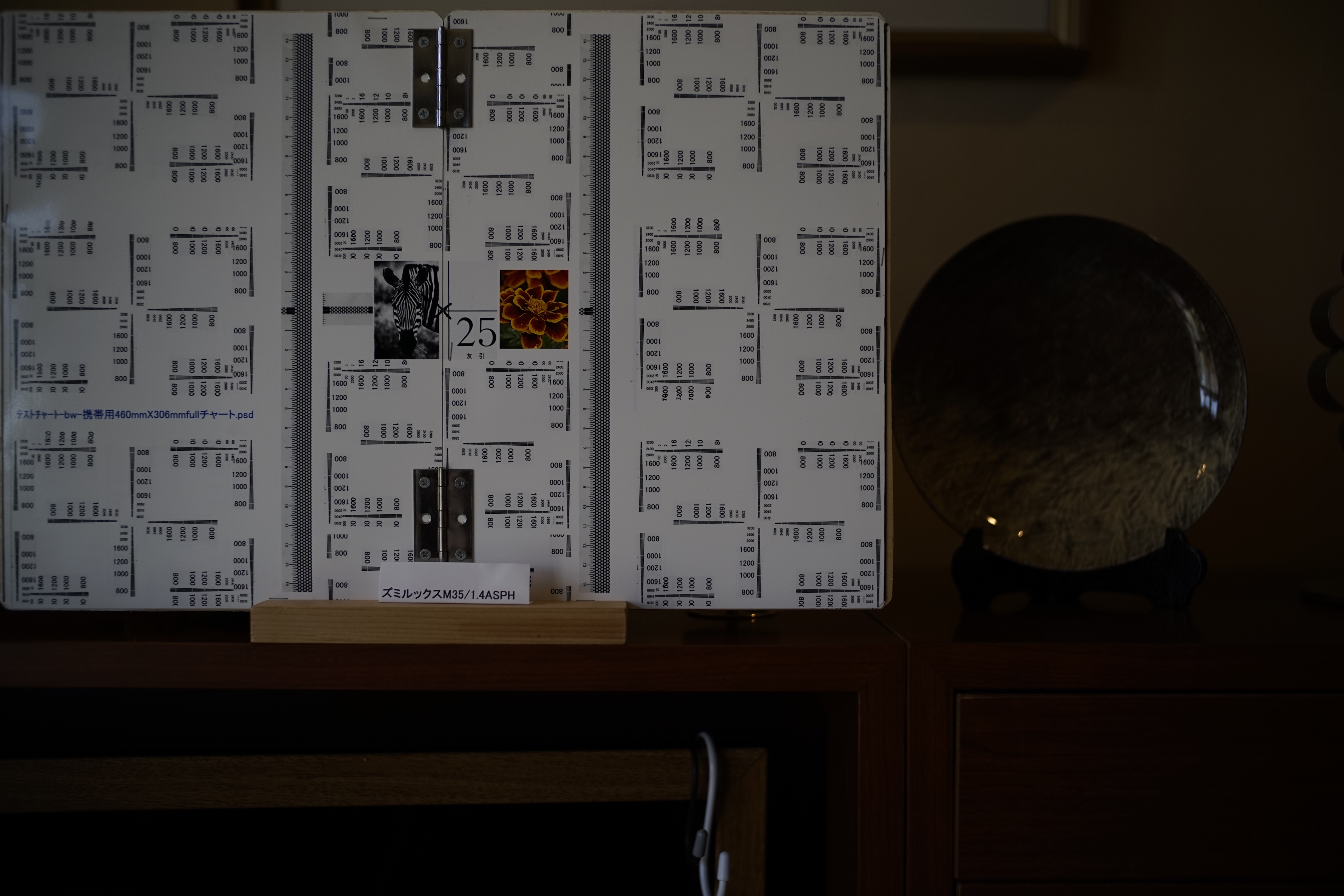 | ↓ズミルックスM35/F1.4ASPH 2017/03/26追加 テストチャート:これまで使っていたものの空白部分に、いくつかの画像を追加 (テストチャート Ver.2) |